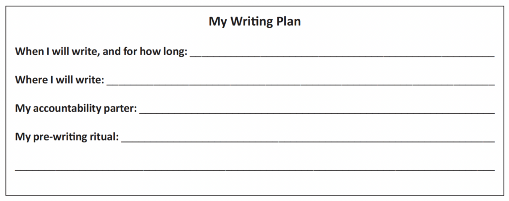4. Consider an accountability partner. If you think you’re going to have trouble keeping to your writing schedule, perhaps a friend or family member will agree to be your accountability partner, to keep you on track.